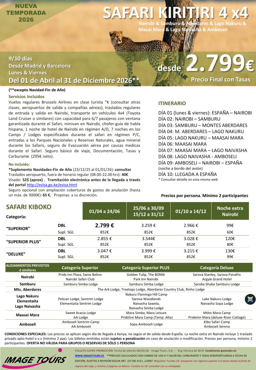 KENYA Kiritiri 2026: Samburu & Aberdares & Nakuru & M. Mara & Naivasha & Amboseli, dsde 2.799€ tasas incluidas